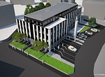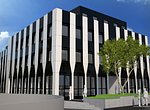 2 Pylonen schaffen Platz für Werbefläche der Mieter. Der Haupt-Pylon akzentuiert den Haupteingang des Gebäudes (Nordfassade) und ist in das Tragsystem des Glasvordachs eingebunden. Auf Höhe des Eingangsbereichs der Ostfassade wird an der Grundstücksgrenze ein weiterer Pylon für Werbezwecke situiert.